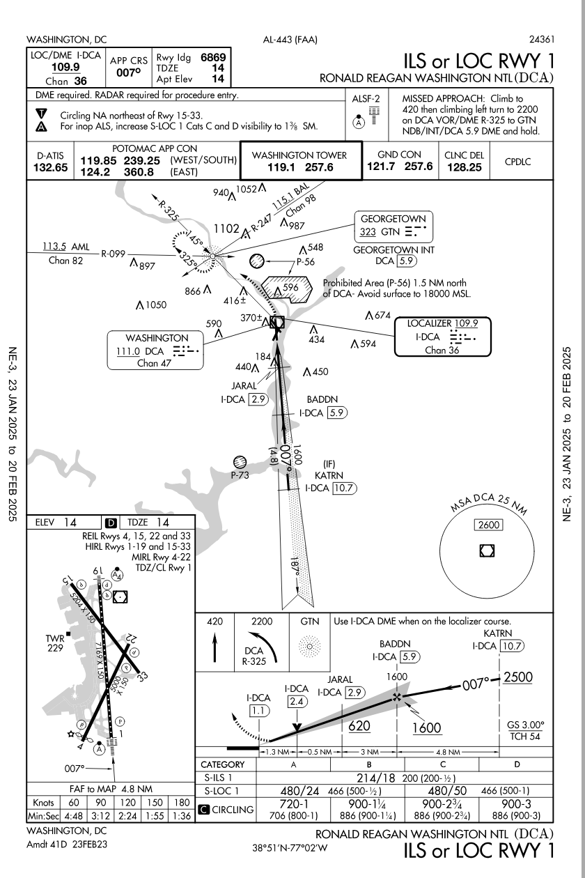 SOP's usually instruct Crews to use ILS data when doing Visual Approaches to runways with that kind of IAP so would that kind of thinking apply in this incident? Would that have been of any benefit considering the existing weather and terrain? Or, would that have been a distraction? There is a curving RNAV approach, that is not in line with the runway until 490 feet/1.4nm, where one makes the last-minute ~50\xb0 left turn for visual runway alignment. In light of that fact, maybe you can reframe your question. AirNav: KDCA - Ronald Reagan Washington National Airport https://aeronav.faa.gov/d-tpp/2501/00443R33.PDF Subjects