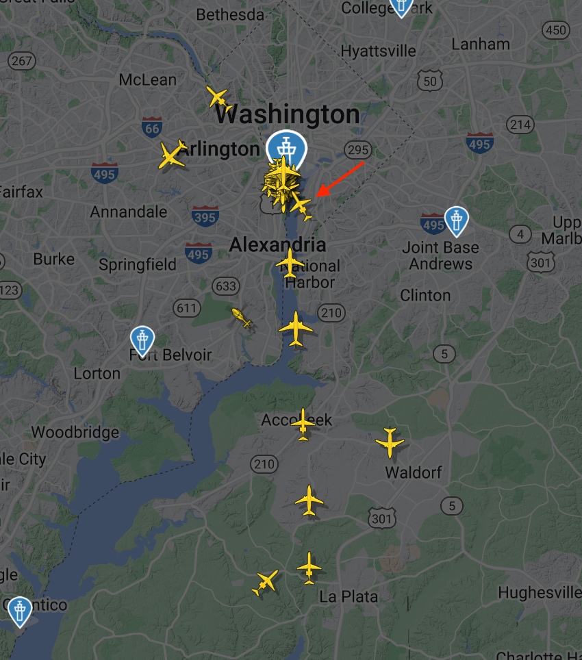 The circled aircraft is RPA4432/E75L with JIA5347/CRJ9 in front and JIA5273/CRJ7 behind. JIA5302/CRJ7 is joining behind JIA5273. AAL1855/B738 is just out of that screenshot to the SW over Nanjemoy Creek. Subjects: None 1 recorded likes for this post.Reply to this quoting this original post. You need to be logged in. Not available on closed threads. |