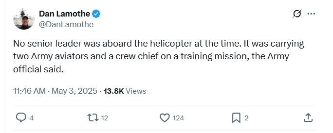 That was what the Army told the WaPo on Saturday:
